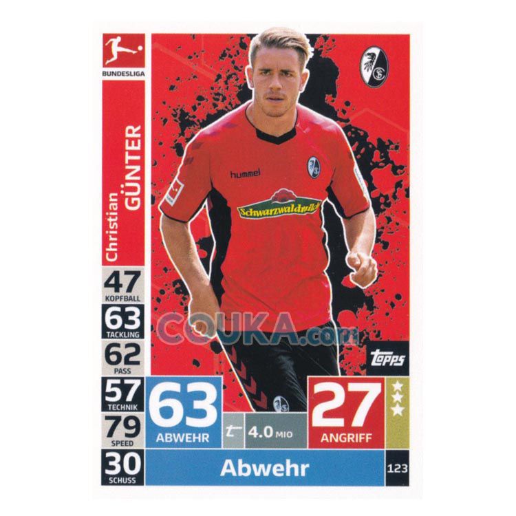 2018-2019 Topps German Fussball Bundesliga Match Attax Football Soccer Card #123 Christian Gunter Base Freiburg德甲球星卡 京特尔 普卡 弗赖堡