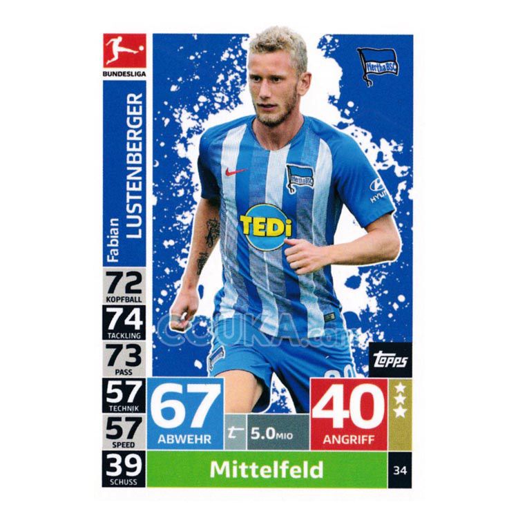 2018-2019 Topps German Fussball Bundesliga Match Attax Football Soccer Card #34 Fabian Lustenberger Base Hertha Berlin德甲球星卡 卢斯滕贝格尔 普卡 柏林赫塔 发布相似商品
