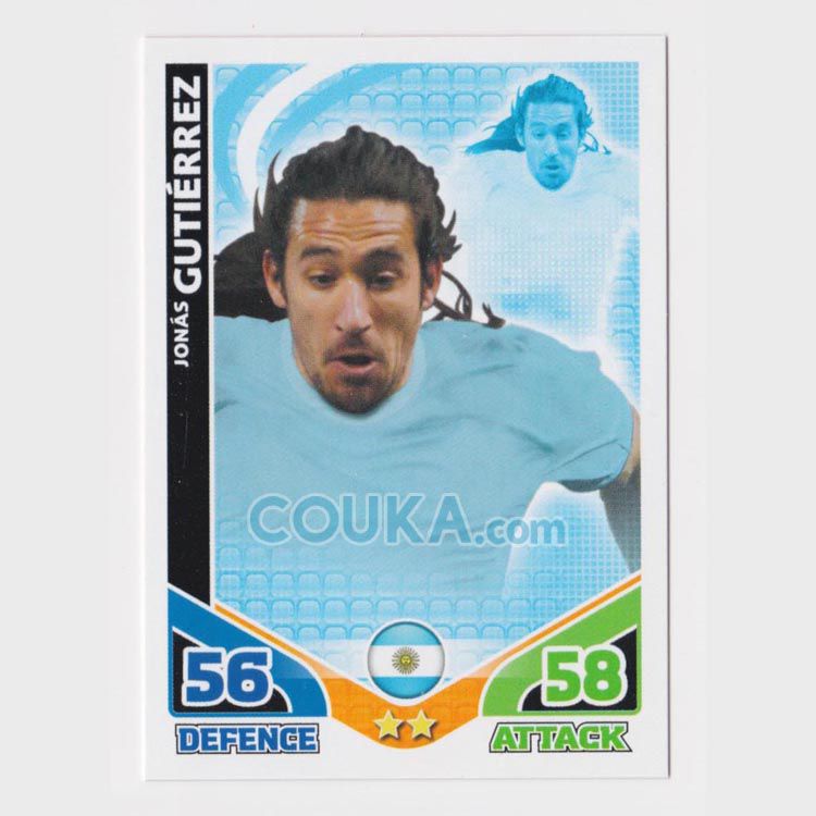 2010 Topps FIFA World Cup England Match Attax Football Soccer Card #9 Jonas Gutierrez Base Argentina Topps世界杯球星卡 古铁雷斯 普卡 阿根廷