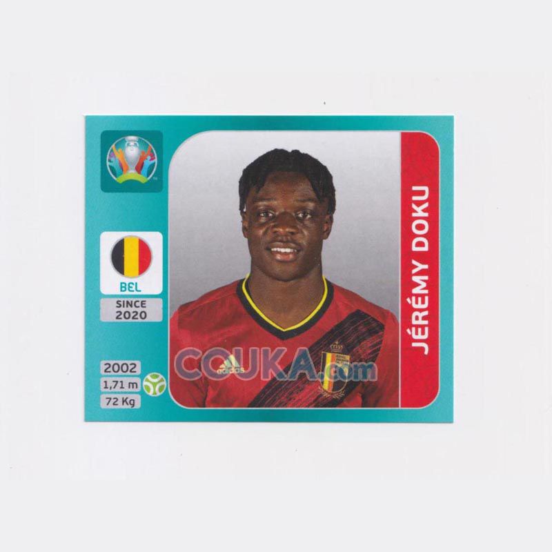 2020 2021 Panini UEFA Euro Cup Tournament 654 version Football Soccer Sticker #131 Jeremy Doku Belgium 帕尼尼欧洲杯球星贴纸 杰里米 多库 比利时