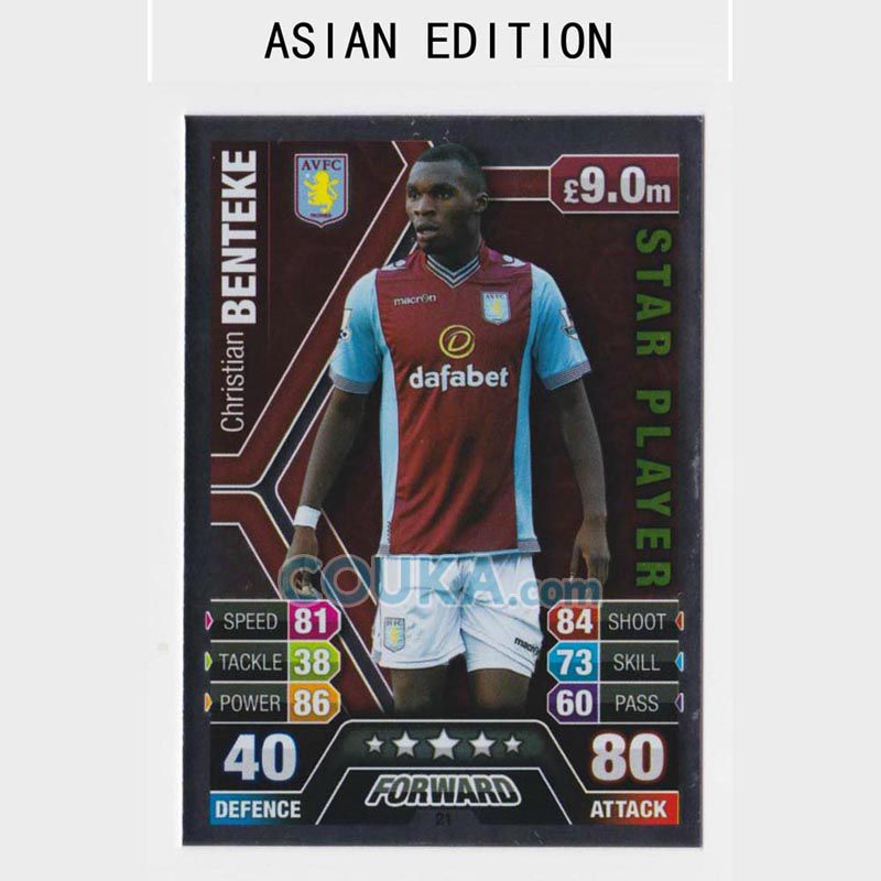 2013-2014 Topps EPL English Premier League Match Attax Asian edition Football Soccer Card #21 Christian Benteke Star Player SP Aston Villa英超 亚太版球星卡 克里斯蒂安 本特克 明星特卡SP 阿斯顿维拉 发布相似商品