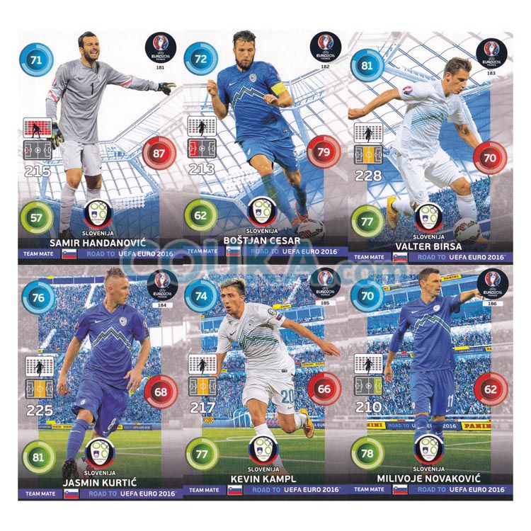 NUKOU寄售 2016 Panini Road to UEFA Euro 2016 Adrenalyn XL RT Football Soccer Card SET 套卡 Team Mate 6 CARDS Slovenia 帕尼尼通向2016欧洲杯预热通往2016欧洲杯之路球星卡 萨米尔 汉达诺维奇 Samir Handanovic/博斯扬 波斯蒂安 塞萨尔 Bostjan Cesar/瓦尔特 比尔萨 Valter Birsa/贾斯明 库尔蒂奇 Jasmin Kurtic/凯文 坎普尔 Kevin Kampl/米利沃耶 诺瓦科维奇 Milivoje Novakovic 普卡 6张 斯洛文尼亚 发布相似商品
