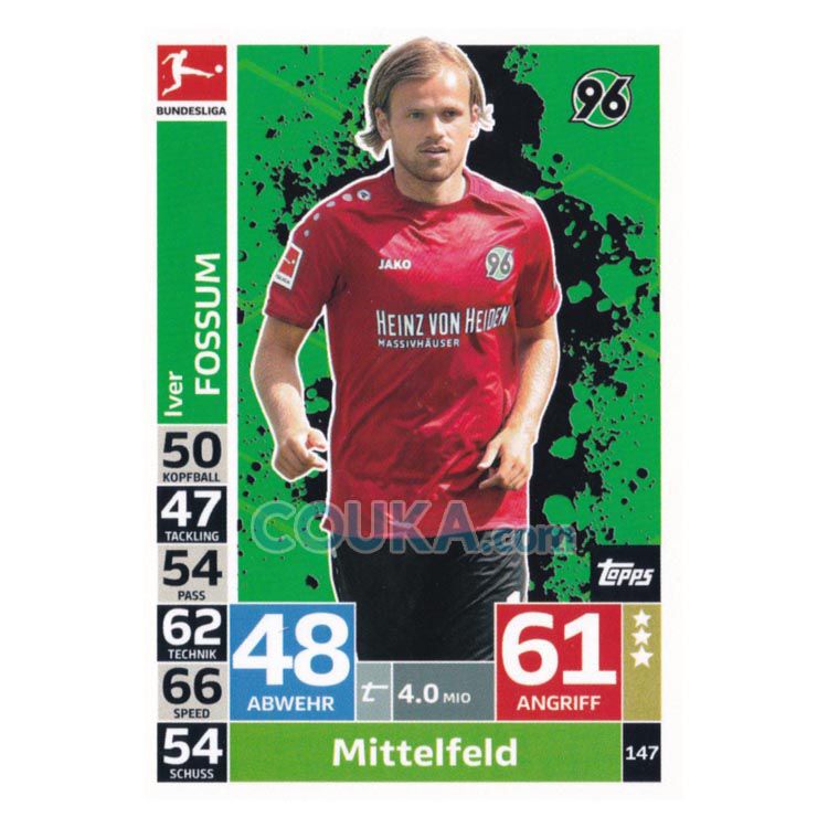 2018-2019 Topps German Fussball Bundesliga Match Attax Football Soccer Card #147 Iver Fossum Base Hannover 96德甲球星卡 福苏姆 普卡 汉诺威96