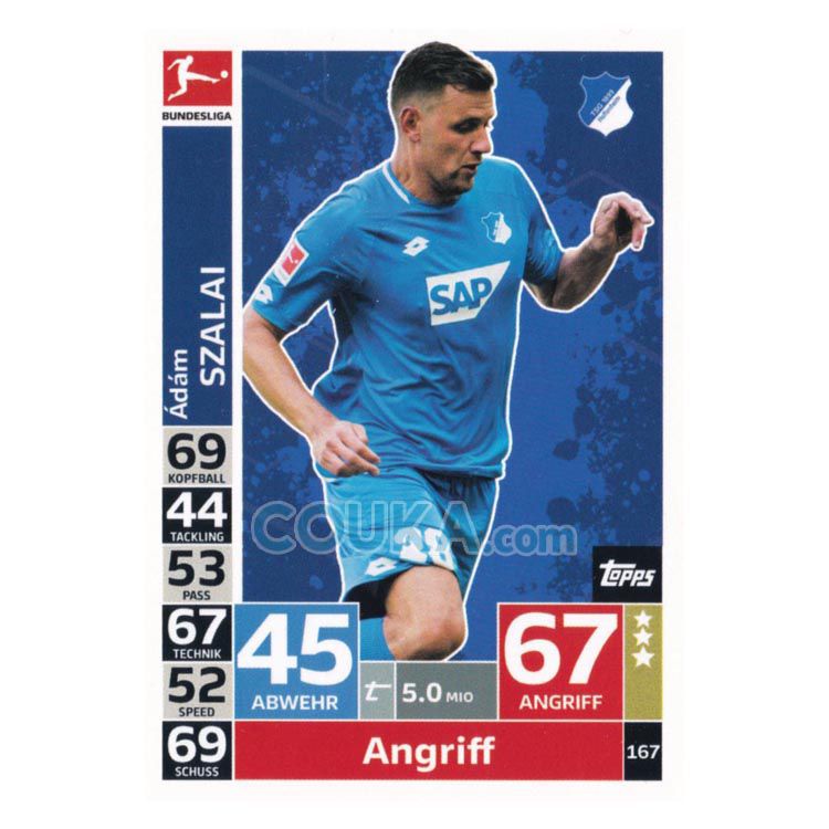 2018-2019 Topps German Fussball Bundesliga Match Attax Football Soccer Card #167 Adam Szalai Base TSG 1899 Hoffenheim德甲球星卡 绍洛伊 普卡 霍芬海姆