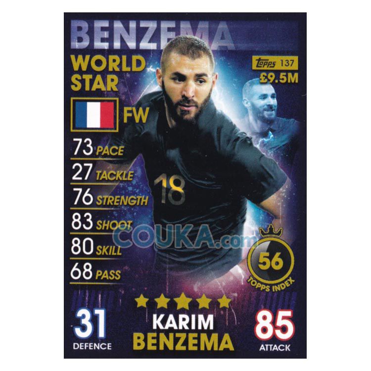 2018-2019 Topps Match Attax 101 Football Soccer Card #137 Karim Benzema World Stars France Topps101球星卡 本泽马 世界巨星 法国