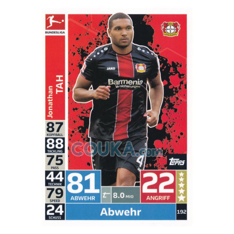2018-2019 Topps German Fussball Bundesliga Match Attax Football Soccer Card #192 Jonathan Tah Base Bayer 04 Leverkusen德甲球星卡 若纳唐 塔 普卡 勒沃库森 发布相似商品