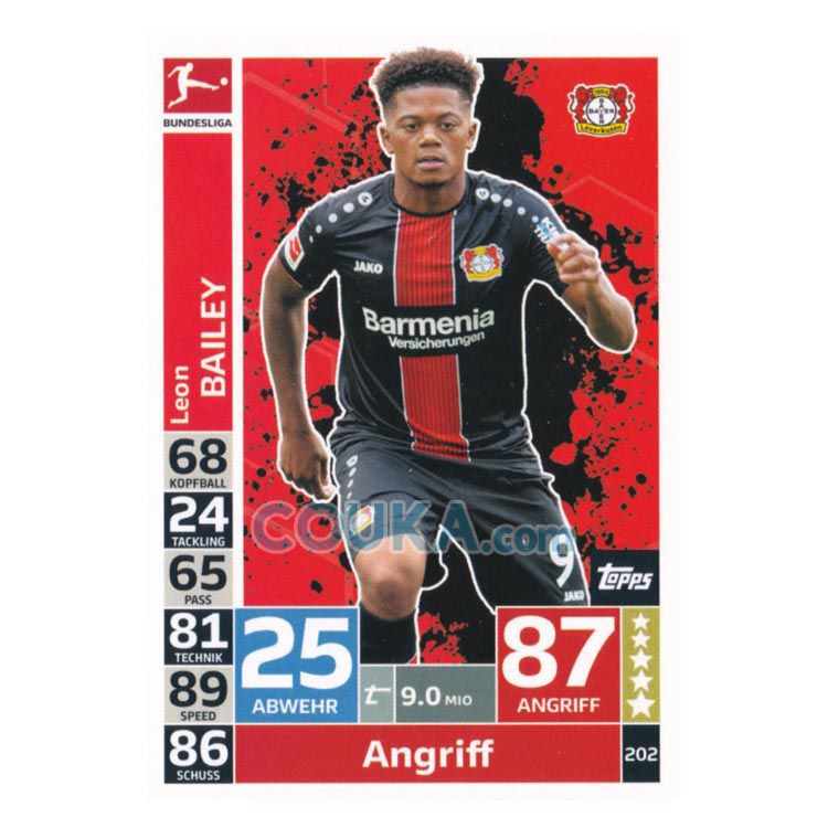 2018-2019 Topps German Fussball Bundesliga Match Attax Football Soccer Card #202 Leon Bailey Base Bayer 04 Leverkusen德甲球星卡 拜利 普卡 勒沃库森