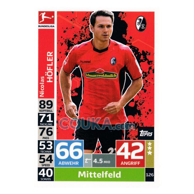 2018-2019 Topps German Fussball Bundesliga Match Attax Football Soccer Card #126 Nicolas Hofler Base Freiburg德甲球星卡 赫夫勒 普卡 弗赖堡