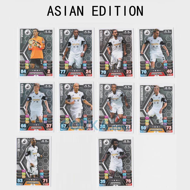 2013-2014 Topps EPL English Premier League Match Attax Asian edition Football Soccer Card BASE SET Swansea City 10 CARDS Michel Vorm/Ashley Williams/Chico Flores/Angel Rangel/Ben Davies/Jonjo Shelvey/Wayne Routledge/Pablo Hernandez/Jonathan De Guzman/Wilfried Bony英超 亚太版球星卡 斯旺西 10张 米切尔 沃姆/阿什利 威廉姆斯/何塞 奇科/安赫尔 兰格尔/本 戴维斯/谢尔维 谢尔威/劳特利奇/巴勃罗 埃尔南德斯/乔纳森 德 古兹曼/博尼 发布相似商品
