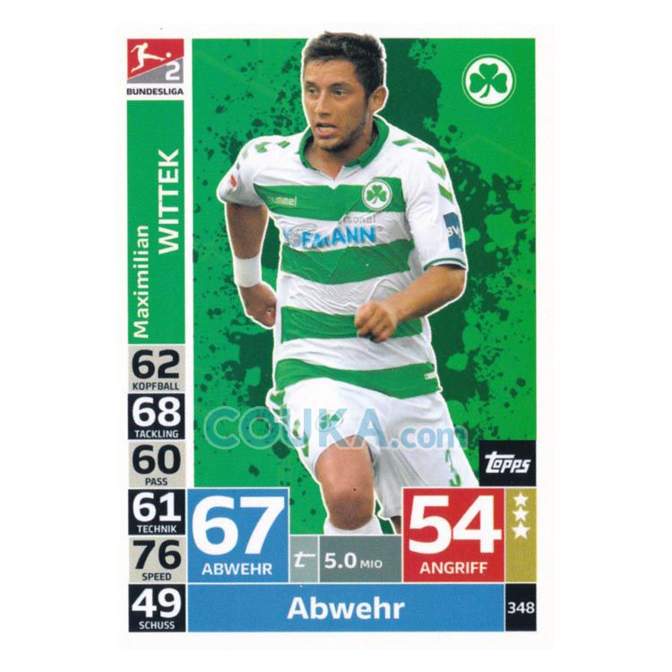 2018-2019 Topps German Fussball Bundesliga Match Attax Football Soccer Card #348 Maximilian Wittek Base Spvgg Greuther Furth德甲球星卡 魏泰克 普卡 菲尔特体育 发布相似商品