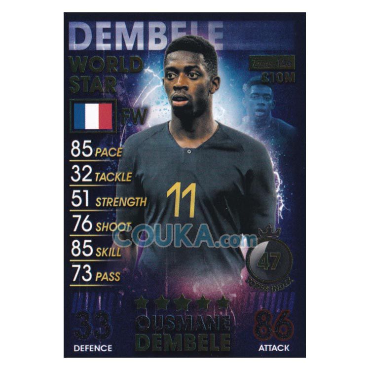 2018-2019 Topps Match Attax 101 Football Soccer Card #146 Ousmane Dembele World Stars France Topps101球星卡 登贝莱 世界巨星 法国