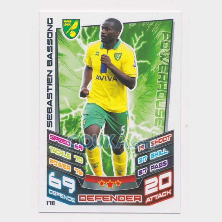2012-2013 Topps EPL English Premier League Match Attax Football Soccer Card #170 Sebastien Bassong Base Norwich City英超球星卡 塞巴斯蒂安 巴松 普卡 诺维奇 发布相似商品