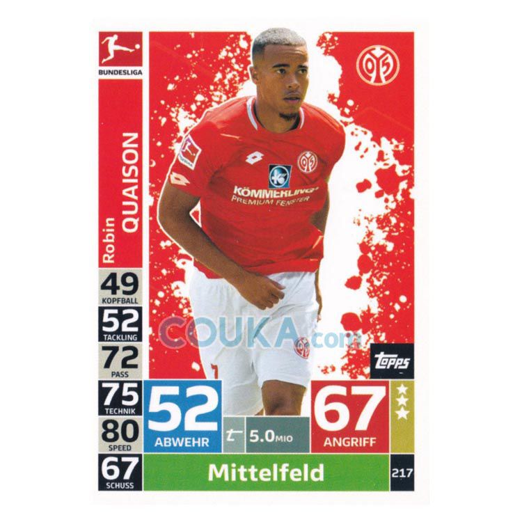 2018-2019 Topps German Fussball Bundesliga Match Attax Football Soccer Card #217 Robin Quaison Base FSV Mainz 05德甲球星卡 罗宾 夸伊森 普卡 美因茨
