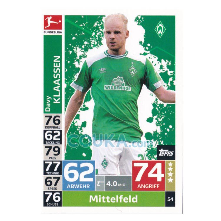 2018-2019 Topps German Fussball Bundesliga Match Attax Football Soccer Card #54 Davy Klaassen Base Werder Bremen德甲球星卡 克拉森 普卡 云达不莱梅