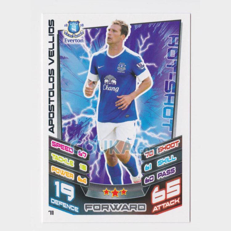 2012-2013 Topps EPL English Premier League Match Attax Football Soccer Card #71 Apostolos Vellios Base Everton英超球星卡 阿波斯托罗斯 维里奥斯 普卡 埃弗顿