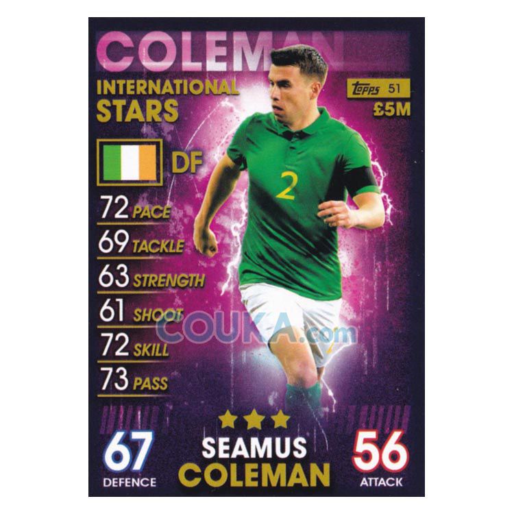 2018-2019 Topps Match Attax 101 Football Soccer Card #51 Seamus Coleman International Star Ireland Topps101球星卡 科尔曼 国际巨星 爱尔兰