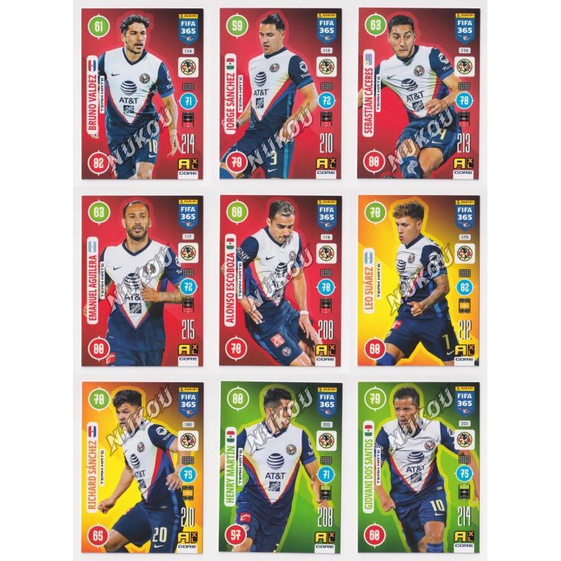 NUKOU寄售 2020-2021 Panini FIFA365 Adrenalyn XL Football Soccer Card BASE SET Club America 9 CARDS Bruno Valdez/Jorge Sanchez/Sebastian Caceres/Emanuel Aguilera/Alonso Escoboza/Leo Suarez/Richard Sanchez/Henry Martin/Giovani Dos Santos 帕尼尼FIFA365 常规版球星卡 游戏版 墨西哥美洲 9张 普卡 套卡 布鲁诺 巴尔德斯/豪尔赫 桑切斯/塞巴斯蒂安 卡塞雷斯/埃曼努尔 阿吉莱拉/阿隆索 埃斯科沃萨/莱奥 苏亚雷斯/理查德 桑切斯/亨利 马丁/多斯桑托斯 发布相似商品