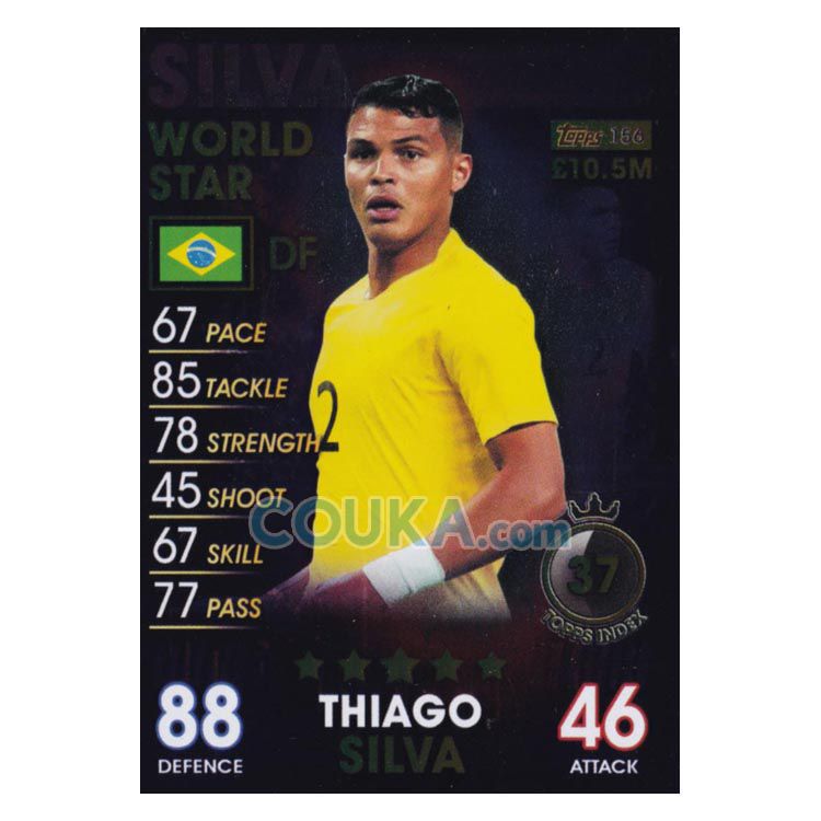 2018-2019 Topps Match Attax 101 Football Soccer Card #156 Thiago Silva World Stars Brazil Topps101球星卡 蒂亚戈 席尔瓦 世界巨星 巴西