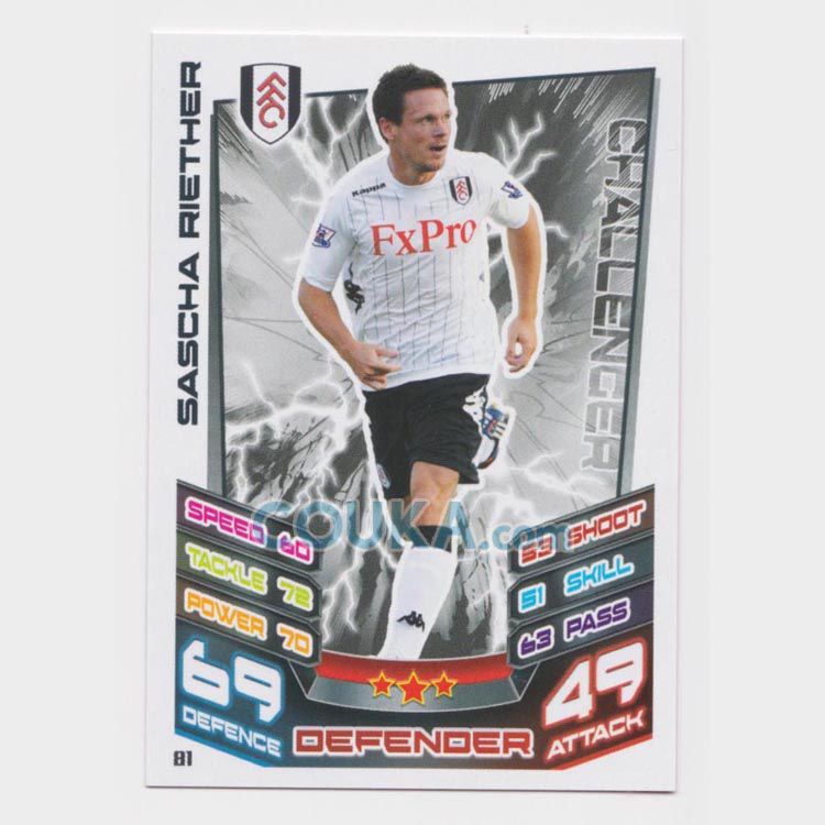 2012-2013 Topps EPL English Premier League Match Attax Football Soccer Card #81 Sascha Riether Base Fulham英超球星卡 萨沙 里特 普卡 富勒姆