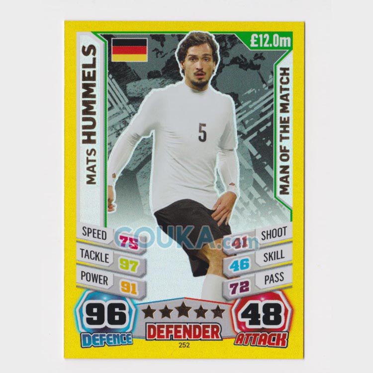 2014 Topps FIFA World Cup England Match Attax Football Soccer Card #252 Mats Hummels Man of the Match MOTM MOM Germany Topps世界杯 英国版球星卡 马茨 胡梅尔斯 MOM MOTM特卡 德国 发布相似商品