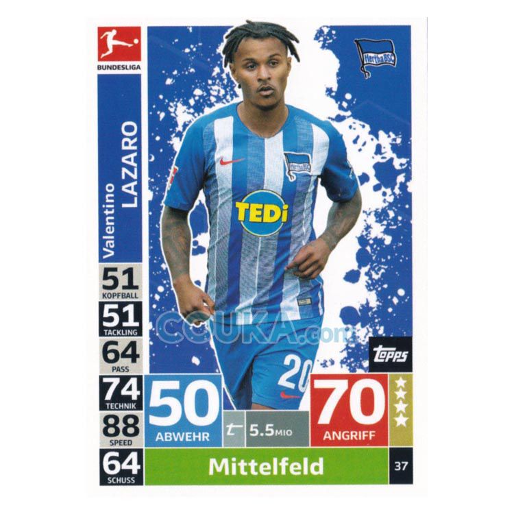 2018-2019 Topps German Fussball Bundesliga Match Attax Football Soccer Card #37 Valentino Lazaro Base Hertha Berlin德甲球星卡 拉扎罗 普卡 柏林赫塔