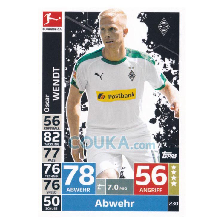 2018-2019 Topps German Fussball Bundesliga Match Attax Football Soccer Card #230 Oscar Wendt Base Monchengladbach德甲球星卡 温特 普卡 门兴格拉德巴赫