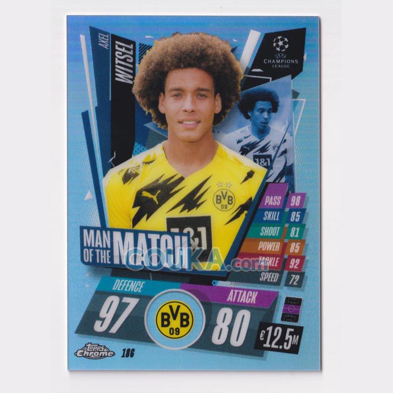 2020-2021 Topps Chrome UEFA Champions League UEFACL Match Attax Football Soccer Card #186 Axel Witsel Refractor Parallel Man of the Match Borussia Dortmund Topps欧冠Chrome游戏版球星卡 埃克塞尔 维特塞尔 平行 银折 闪卡 MOTM MOM 多特蒙德 发布相似商品