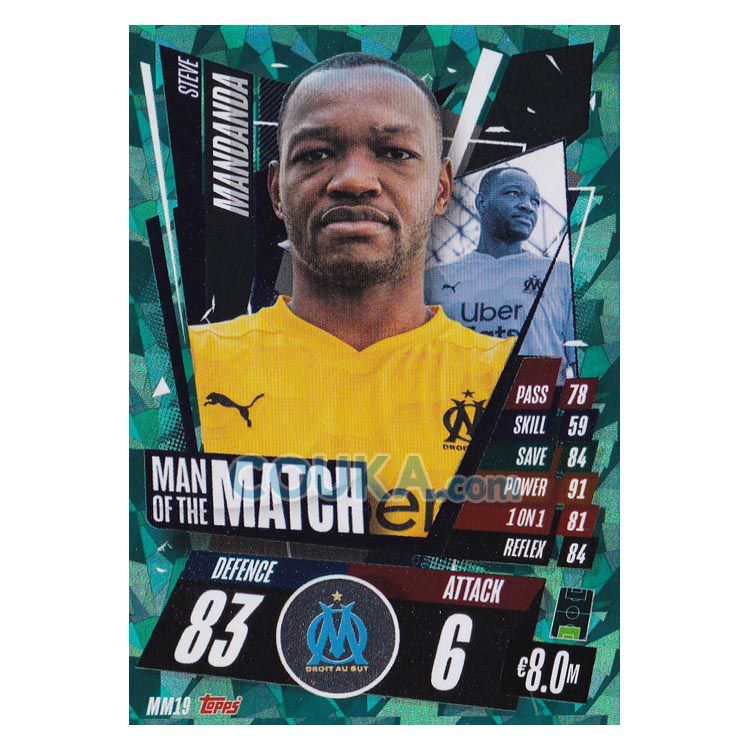 NUKOU寄售 2020-2021 Topps UEFA Champions League UEFACL Match Attax Football Soccer Card #MM19 Steve Mandanda Olympique Marseill Man of the Match欧冠球星卡 曼丹达 马赛 MOTM MOM 发布相似商品