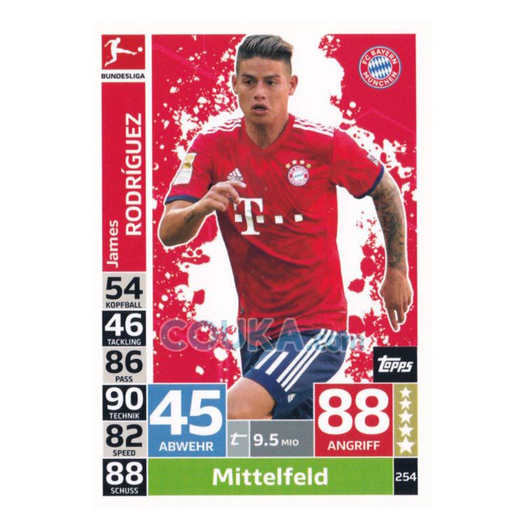 2018-2019 Topps German Fussball Bundesliga Match Attax Football Soccer Card #254 James Rodriguez Base Bayern Munich德甲球星卡 J罗德里格斯 普卡 拜仁