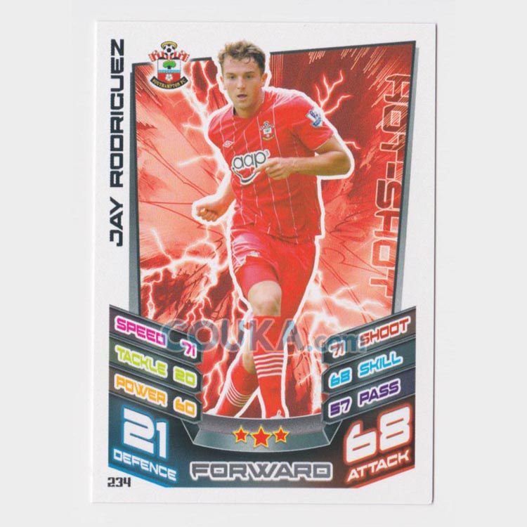 2012-2013 Topps EPL English Premier League Match Attax Football Soccer Card #234 Jay Rodriguez Base Southampton英超球星卡 杰伊 罗德里格斯 普卡 南安普顿