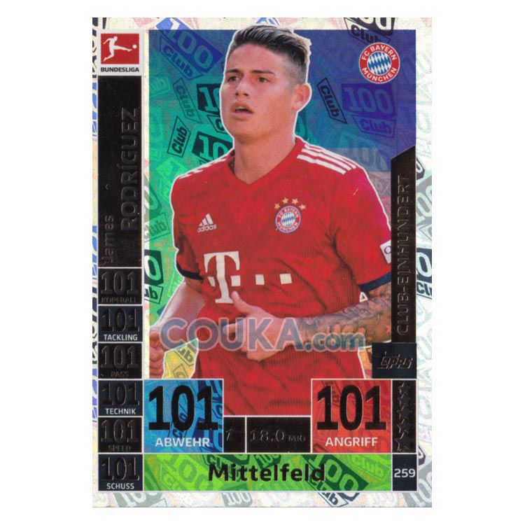 2018-2019 Topps German Fussball Bundesliga Match Attax Football Soccer Card #259 James Rodriguez Club-Einhundert 100 Hundred Club Bayern Munich德甲球星卡 J罗德里格斯 100club 拜仁 发布相似商品