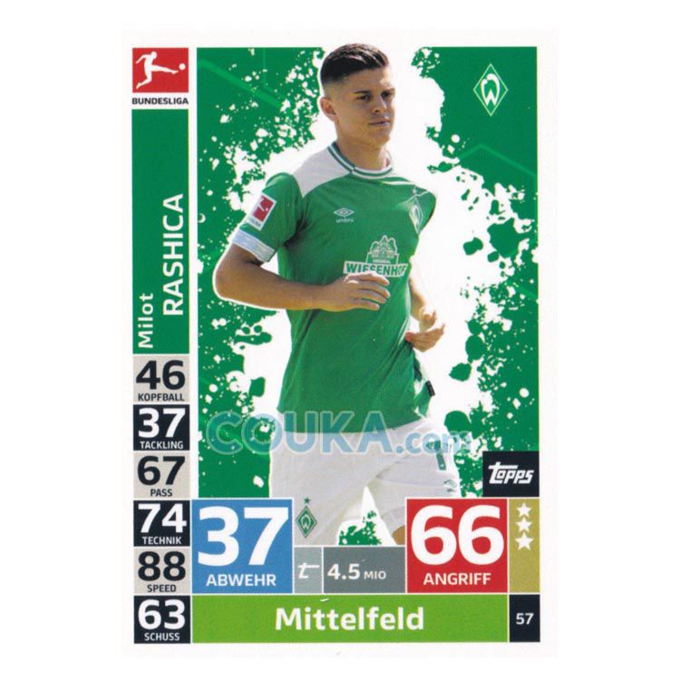 2018-2019 Topps German Fussball Bundesliga Match Attax Football Soccer Card #57 Milot Rashica Base Werder Bremen德甲球星卡 拉希察 普卡 云达不莱梅