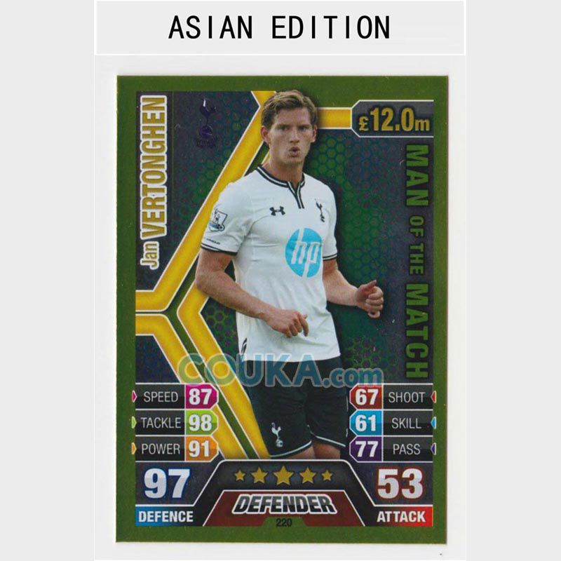 2013-2014 Topps EPL English Premier League Match Attax Asian edition Football Soccer Card #220 Jan Vertonghen Man Of The Match MOTM MOM Tottenham Hotspur英超 亚太版球星卡 扬 费尔通亨 MOTM MOM 热刺 发布相似商品