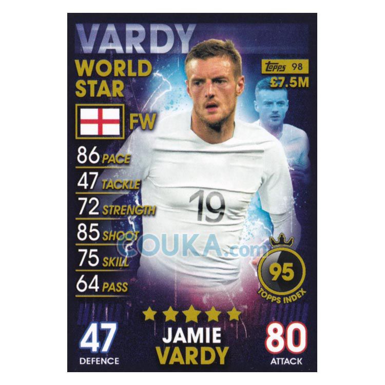2018-2019 Topps Match Attax 101 Football Soccer Card #98 Jamie Vardy World Stars England Topps101球星卡 瓦尔迪 世界巨星 英格兰