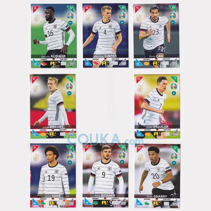 2020 2021 Panini UEFA Euro Cup Kick Off Adrenalyn XL Football Soccer Card Base Set Germany 8 CARDS Antonio Rudiger/Matthias Ginter/Emre Can/Julian Brandt/Julian Draxler/Leroy Sane/Timo Werner/Serge Gnabry 帕尼尼欧洲杯球星卡 德国 8张 鲁迪格 吕迪格/金特尔/埃姆雷 詹/布兰特/德拉克斯勒/萨内/韦尔纳 维尔纳/格纳布里 发布相似商品