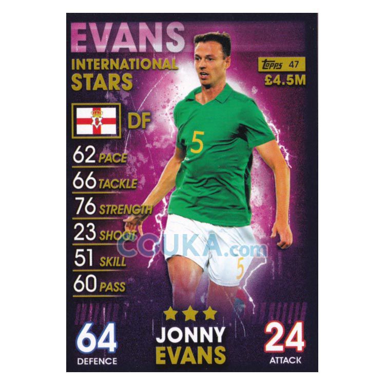 2018-2019 Topps Match Attax 101 Football Soccer Card #47 Jonny Evans International Star Northern Ireland Topps101球星卡 埃文斯 国际巨星 北爱尔兰