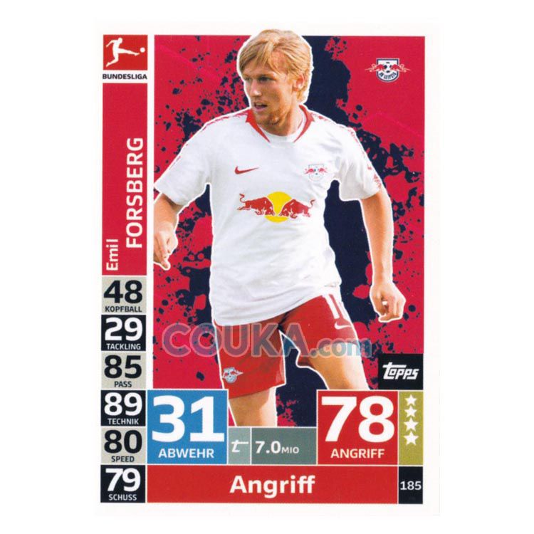 2018-2019 Topps German Fussball Bundesliga Match Attax Football Soccer Card #185 Emil Forsberg Base RB Leipzig德甲球星卡 福斯贝里 普卡 莱比锡红牛