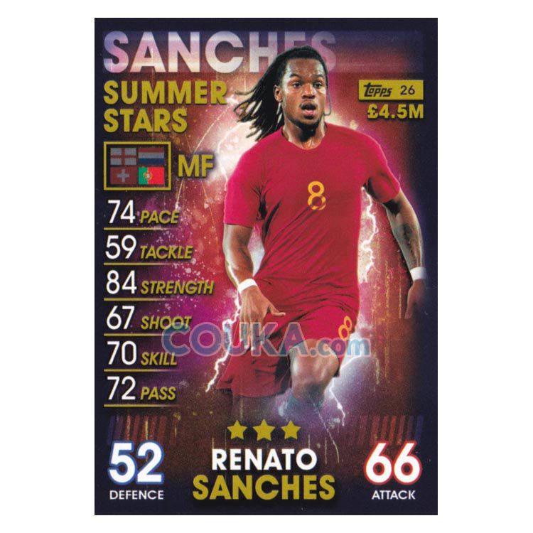 2018-2019 Topps Match Attax 101 Football Soccer Card #26 Renato Sanches Summer Star Portugal Topps101球星卡 雷纳托 桑切斯 夏星 葡萄牙