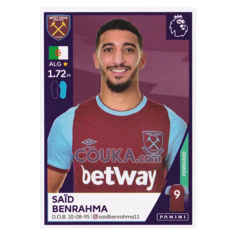 2020-2021 Panini EPL English Premier League Football Soccer Sticker #605 Said Benrahma West Ham United 帕尼尼英超球星贴纸 S 本拉赫马 西汉姆联