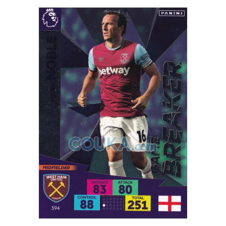 NUKOU寄售 2020-2021 Panini EPL English Premier League Adrenalyn XL Football Soccer Card #394 Mark Noble West Ham United Game Breaker 帕尼尼英超球星卡 游戏版 诺布尔 西汉姆联 破坏者特卡 发布相似商品