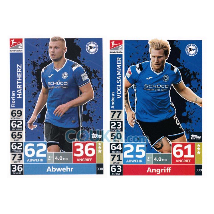 2018-2019 Topps German Fussball Bundesliga Match Attax Football Soccer Card BASE SET DSC Arminia Bielefeld 2 CARDS Florian Hartherz/Andreas Voglsammer德甲球星卡 比勒菲尔德 2张 哈尔特赫茨/沃尔萨默尔 发布相似商品