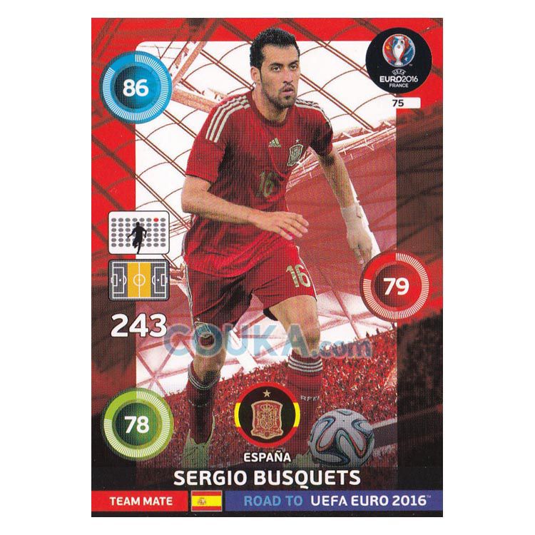 NUKOU寄售 2016 Panini Road to UEFA Euro 2016 Adrenalyn XL RT Football Soccer Card #75 Team Mate Spain 帕尼尼通向2016欧洲杯预热通往2016欧洲杯之路球星卡 塞尔吉奥 布斯克茨 布茨克斯 Sergi Sergio Busquets 普卡 西班牙 发布相似商品