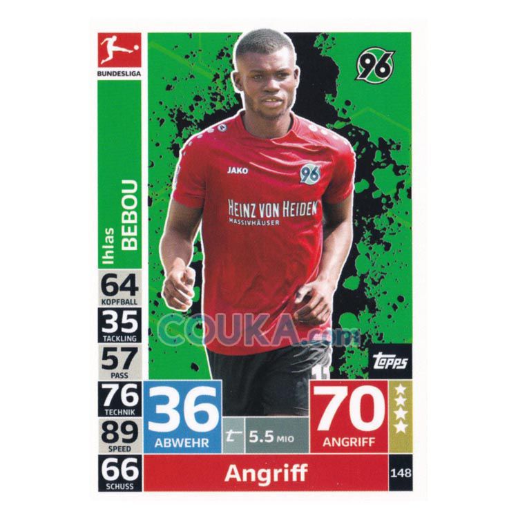 2018-2019 Topps German Fussball Bundesliga Match Attax Football Soccer Card #148 Ihlas Bebou Base Hannover 96德甲球星卡 比博 普卡 汉诺威96