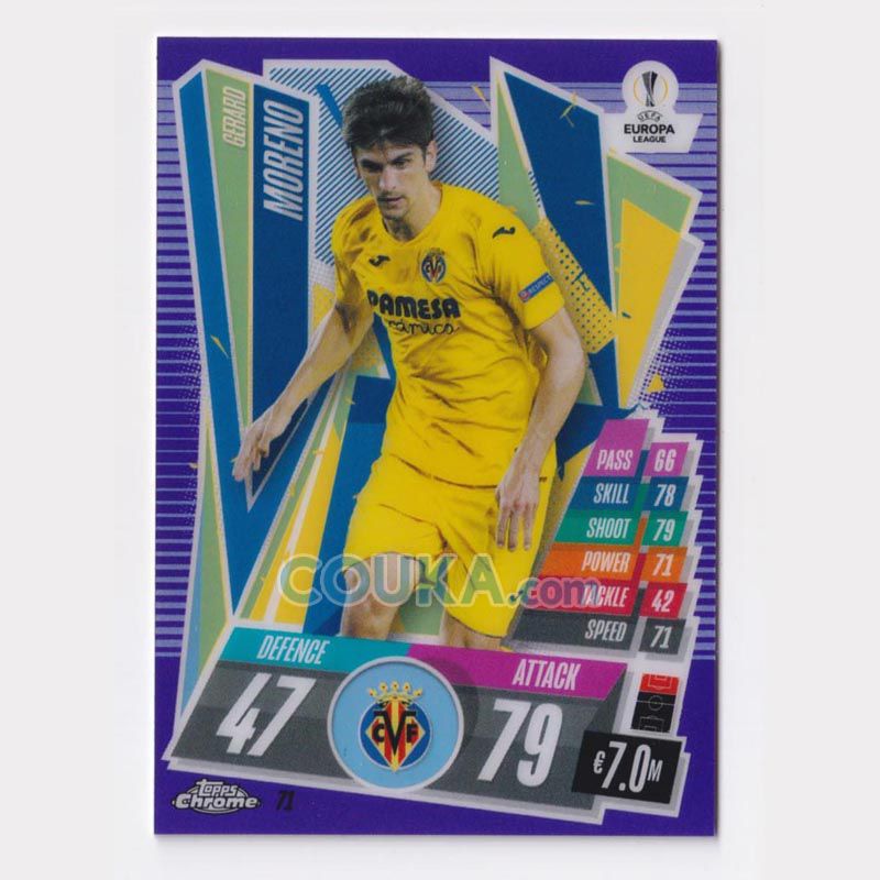 NUKOU寄售 2020-2021 Topps Chrome UEFA Champions League UEFACL Match Attax Football Soccer Card #71 Gerard Moreno Purple Refractor Base Villarreal /299 Topps欧冠Chrome游戏版球星卡 赫拉德 莫雷诺 平行 紫折 闪卡 普卡 比利亚雷亚尔 299编 发布相似商品