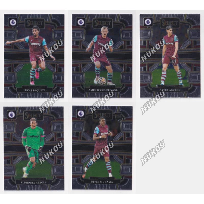 NUKOU寄售 2023-2024 2023-24 2023/2024 2023/24 帕尼尼Select英超Select足球球星卡 Panini Select English Premier League EPL Football Soccer Trading Card Collection 普卡套卡5张 SET 5 CARDS 一级普卡 一阶基础卡 Base - Terrace RC新秀 RC Rookie 卢卡斯 帕奎塔 Lucas Paqueta/詹姆斯 沃德-普劳斯 James Ward-Prowse/纳耶夫 阿奎奥德 阿格尔德 阿格德 纳依夫 阿盖德 Nayef Aguerd/阿方斯 阿雷奥拉 Alphonse Areola/迪文 穆巴马 穆巴玛 Divin Mubama 西汉姆联 West Ham United FC #91/#92/#93/#94/#95 发布相似商品
