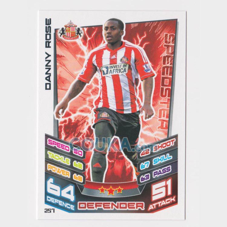 2012-2013 Topps EPL English Premier League Match Attax Football Soccer Card #257 Danny Rose Base Sunderland英超球星卡 丹尼 罗斯 普卡 桑德兰