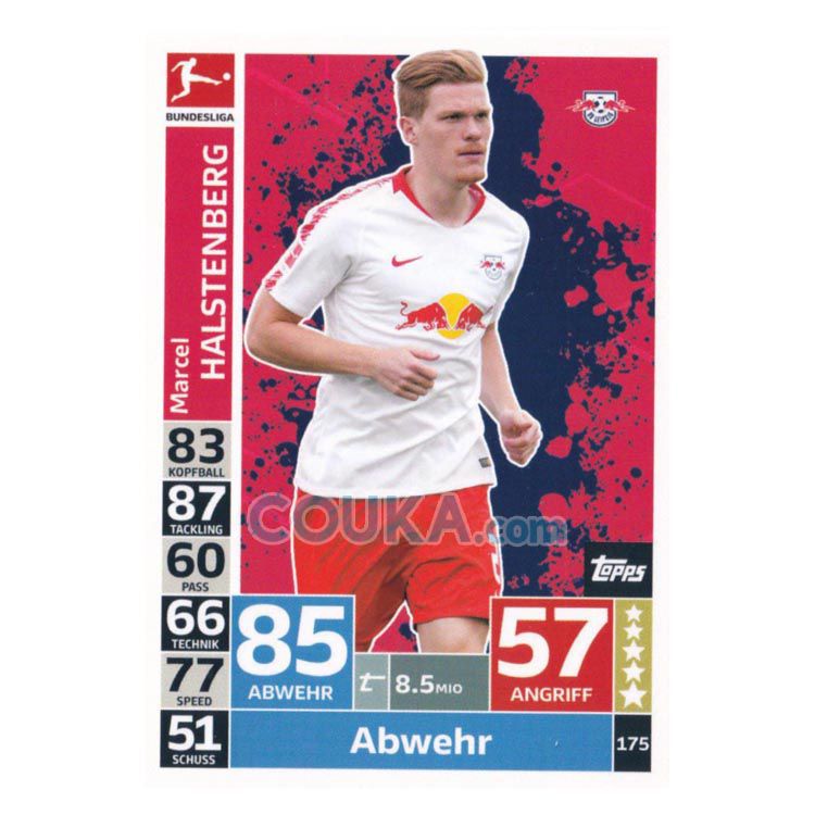 2018-2019 Topps German Fussball Bundesliga Match Attax Football Soccer Card #175 Marcel Halstenberg Base RB Leipzig德甲球星卡 哈尔斯滕贝格 普卡 莱比锡红牛