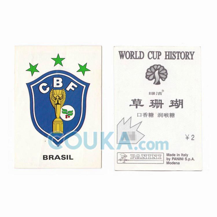 Panini World Cup History Chinese Edition Football Soccer Sticker #20 Brazil Badge 帕尼尼世界杯历史 草珊瑚 中文版球星贴纸 巴西 队徽