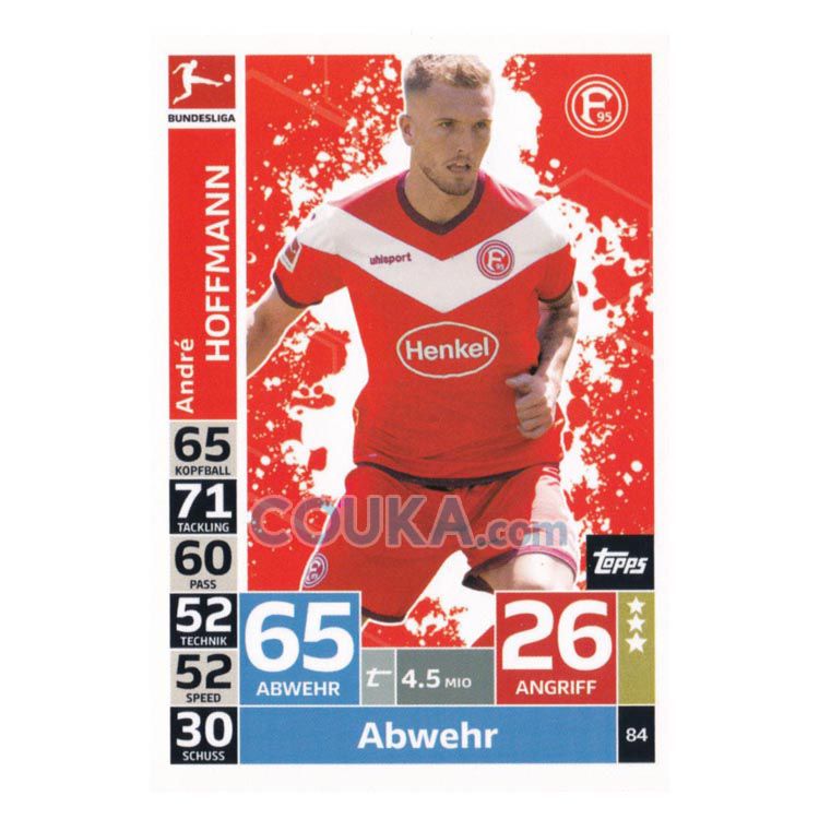 2018-2019 Topps German Fussball Bundesliga Match Attax Football Soccer Card #84 Andre Hoffmann Base Fortuna Dusseldorf德甲球星卡 霍夫曼 普卡 杜塞尔多夫