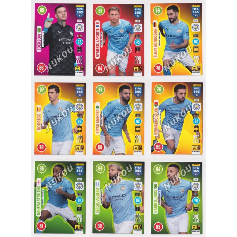 NUKOU寄售 2020-2021 Panini FIFA365 Adrenalyn XL Football Soccer Card BASE SET Manchester City 9 CARDS Ederson/Aymeric Laporte/Ilkay Gundogan/Rodrigo/Riyad Mahrez/Bernardo Silva/Raheem Sterling/Sergio Aguero/Gabriel Jesus 帕尼尼FIFA365 常规版球星卡 游戏版 曼城 9张 普卡 套卡 埃德森/拉波尔特/京多安/罗德里戈/马赫雷斯/贝纳尔多 席尔瓦/斯特林/阿奎罗/热苏斯 发布相似商品